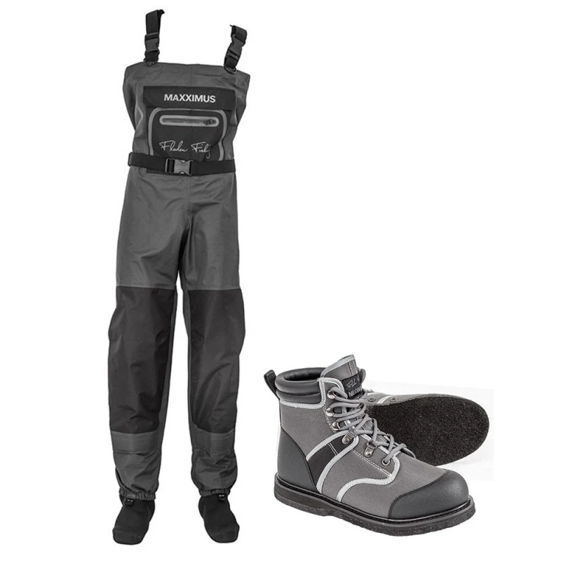 Fladen Maxximus Vadarcombo Filt is een waadpakket met ademende waadpakken en waadschoenen met viltzolen. Dit alles voor een onverslaanbare prijs!