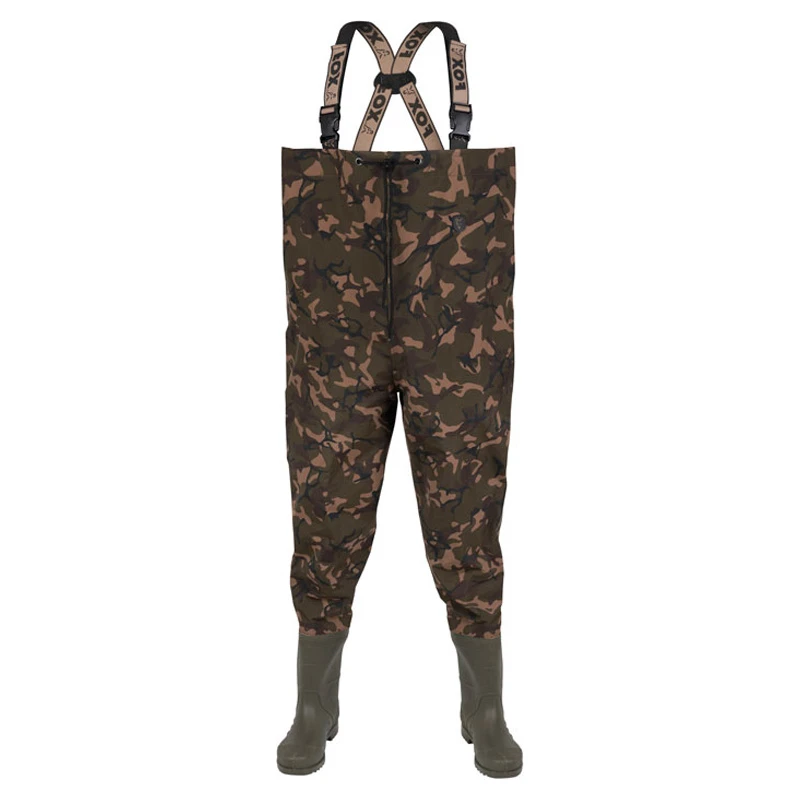Fox Camo LW Waders zijn een paar duurzame steltlopers die gemaakt zijn van Nylon Taslon stof. Ze hebben zware PVC laarzen met een getextureerde zool en volledig getapete naden.