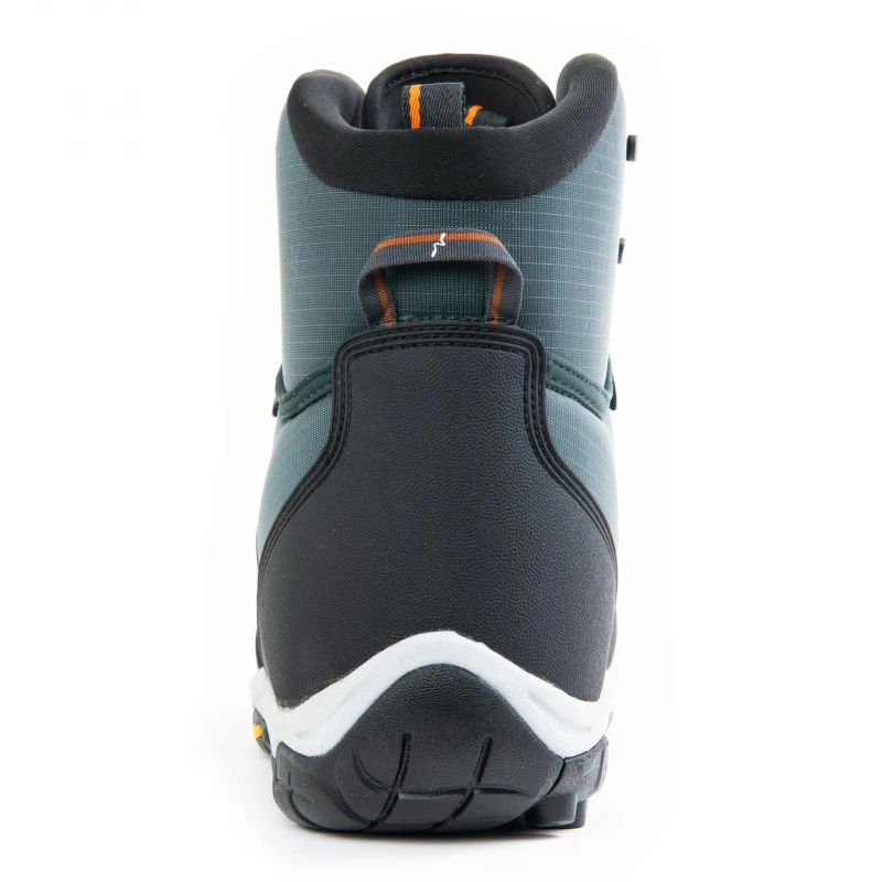 De stijve hoofdschacht is gebouwd om het ruwe terrein en de spanningen van een meerdaagse trektocht te weerstaan dankzij de grote torsiestabiliteit. Om gladde en rotsachtige rivier- en meerbodems aan te kunnen, gebruiken we een Vibram® Idrogrip-zool die je de beste grip geeft op elke ondergrond. De leest is breed en comfortabel, geïnspireerd op moderne wandelschoenen. Het duurzame gerecyclede nylon is gelamineerd in een schuim met gesloten cellen dat de laars licht houdt zonder water te absorberen. De wigvormige en ergonomisch ontworpen tong verlicht de druk op je voet.