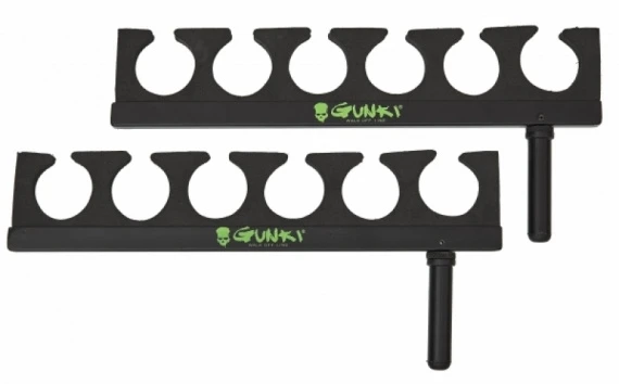 Rod houders voor Gunkis Belly Boats. Kan overal worden gemonteerd langs de Gunkis accessoire bar of op de schroef aan accessoire bar de benen. De hengelhouder heeft 6 sleuven van 40mm.