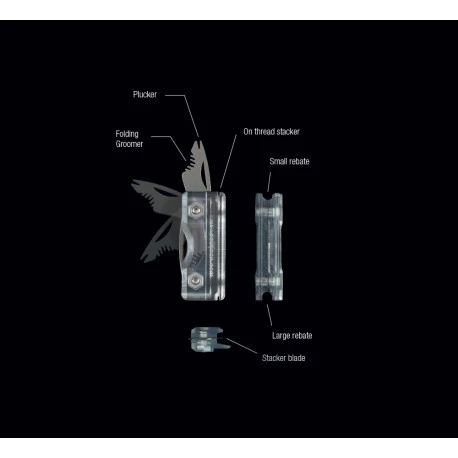 MT Stacker and folding Groomer een combinatie van Hark en Plucker. Speciaal gevormd om CDC te verzorgen en klitvrije vleugels en hackles te verkrijgen.