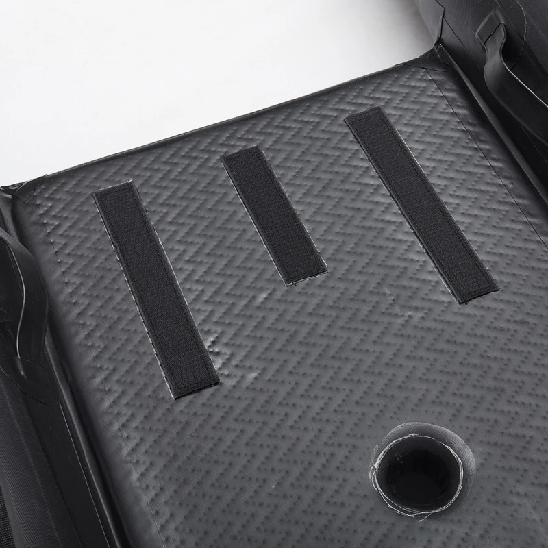 Hoewel de boot klaar is voor Float Plus, kan hij ook worden uitgerust met een meer traditionele elektrische trollingmotor – de bumper heeft een opening speciaal om u te helpen een motorsteun goed vast te lijmen. De unieke structuur van de boeg betekent dat het zwaartepunt meer in evenwicht is na het plaatsen van een motor daar – dit verbetert de algehele balans en het sturen van de boot aanzienlijk. Het nieuwe ontwerp van deze belly boat is 10 cm langer dan de vorige iteratie, waardoor het drijfvermogen en de balans nog verder toenemen, terwijl de drop stitch seat voorzien is van EVA vulling voor uitzonderlijk zitcomfort. De zakken zijn waterdicht, stevig en zeer stabiel en er is ook een waterdichte zak in de voorkant van de boeg. Maatwerk is essentieel bij deze belly boat – alle buisuiteinden zijn leeg, zodat u gemakkelijk uw gewenste accessoires zoals visvinders of hengelsteunen met zelfklevende pads kunt uitrusten. Geleverd met een eenvoudig te gebruiken handpomp en drukklok, zodat u er altijd zeker van kunt zijn dat de druk optimaal is.