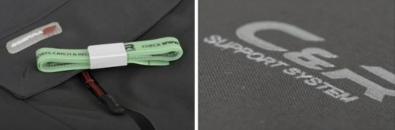• Speciale fluorescerende groene Catch & Release indicator strap binnenin rechter