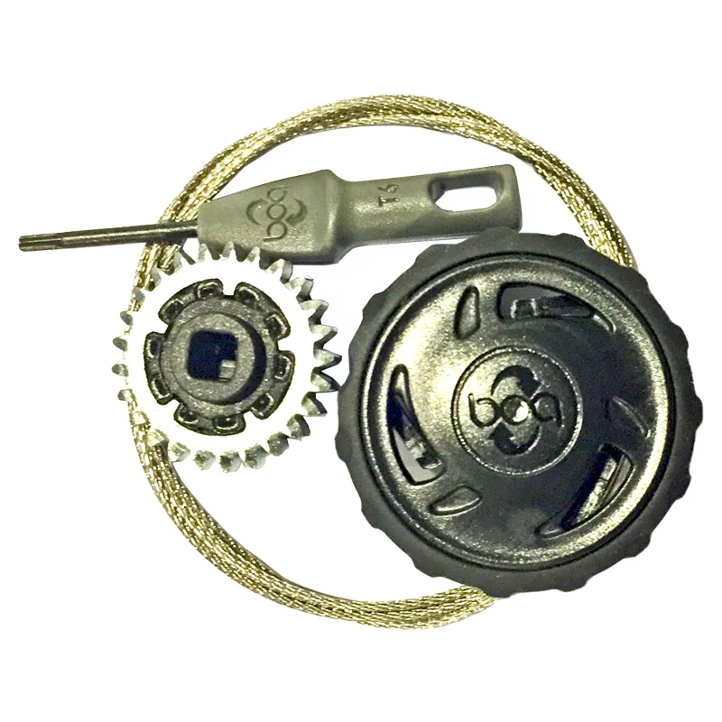 Inclusief vervangingsknop en draadveter voor eenvoudige vervanging van het vetersysteem in het veld. Sterk aanbevolen!