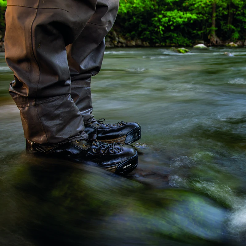 De Michelin-zool die we samen met de wereldberoemde bandenfabrikant Michelin hebben ontworpen, biedt meerdere voordelen ten opzichte van veel andere rubberen zolen. De voorbumper is ingebouwd in de buitenzool, zodat er geen mogelijkheid is om ze te scheiden. Het patroon van de zool is geïnspireerd op de Michelin LTX A/S band met aanpassingen gericht op waden. De lamellen aan de zijkanten hebben agressieve sculpturen die je extra grip geven op hellingen en modderige paden. De lamellen in het midden hebben golfsnedes voor meer grip en aanpassingsvermogen over oneffenheden in de rotsen. De sculpturen aan de voorkant en de hiel zijn ontworpen om slijtage tijdens langere wandelingen op te vangen en hun patroon voegt tractie toe wanneer dat nodig is. Voor extreem gladde en slijmerige omstandigheden hebben we verzonken posities gemaakt voor onze Tungsten Carbide noppen, die indien nodig kunnen worden toegevoegd.